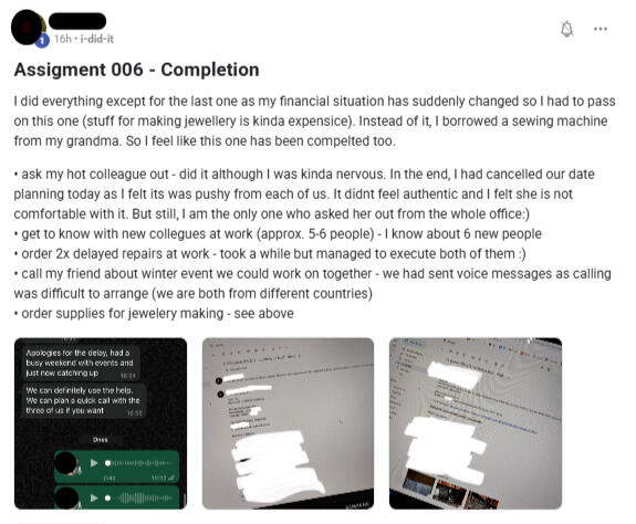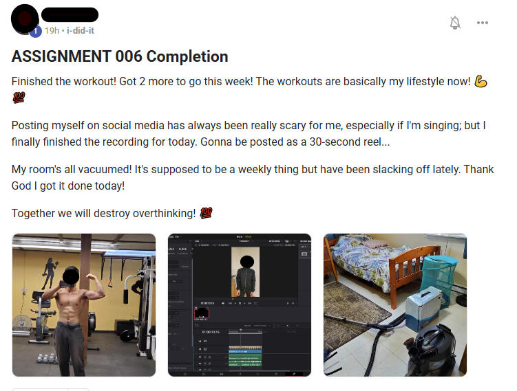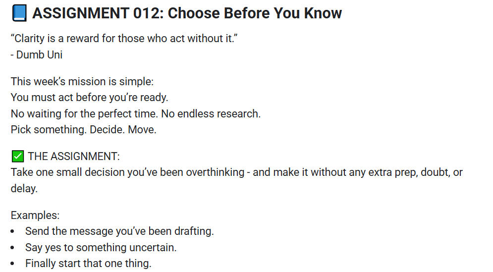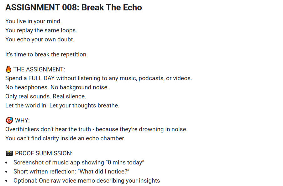 Weekly Assignments designed to kill overthinking.